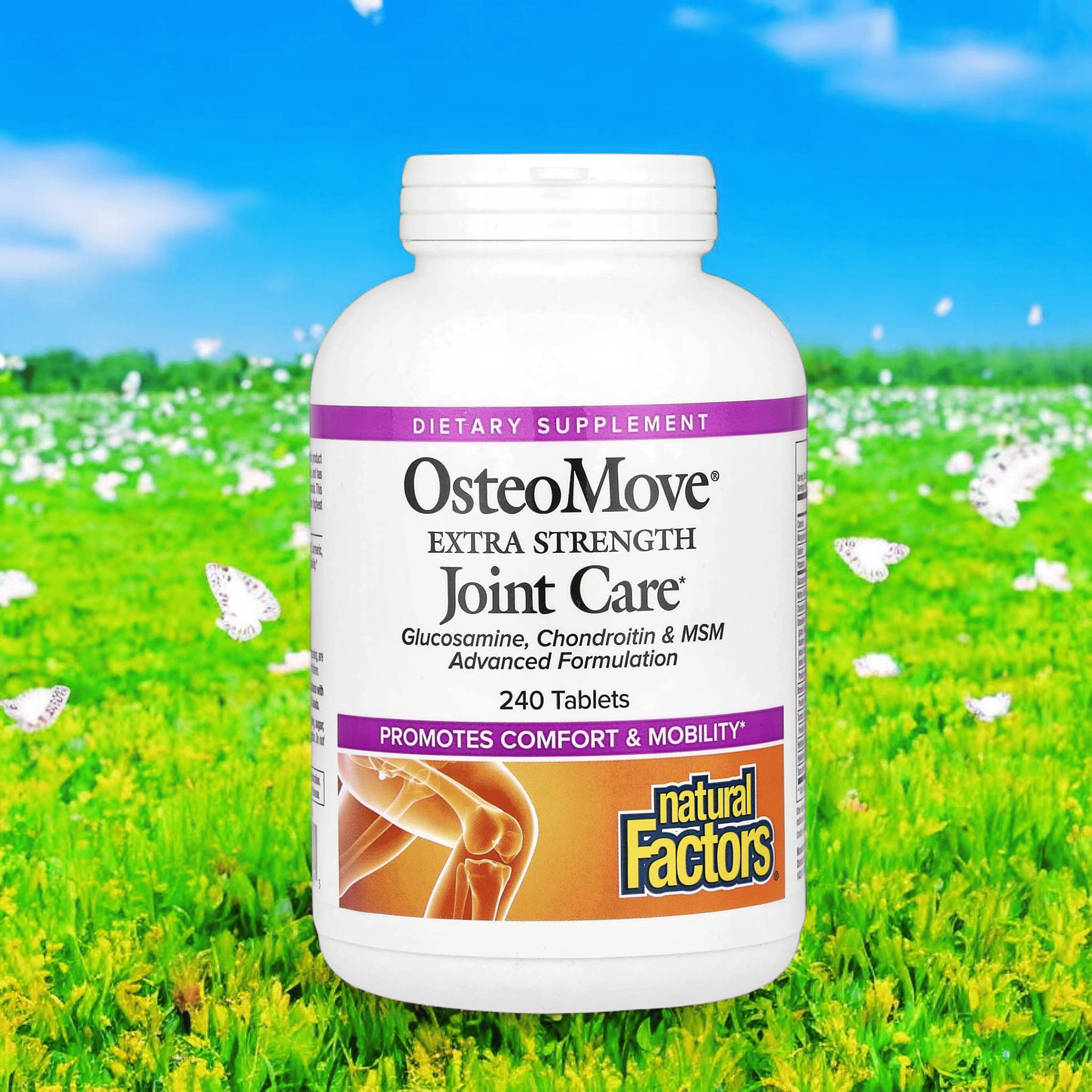 Склад 1 порції (2 таблетки): сульфат глюкозаміну (молюски) 1500 мг, метилсульфонілметан (МСМ) OptiMSM® 600 мг, хондроїтинсульфат (бичачий хрящ) 400 мг, комплекс суперефективних поліфенолів з фруктів OsteoMove® (екстракт виноградних кісточок, лохина, чорниці, журавлина, гранат, малина, полуниця) 200 мг (поліфеноли 152 мг), екстракт босвелії (Boswellia serrata) (смола) 100 мг (босвелієві кислоти 60 мг), екстракт кореневища куркуми (Curcuma longa) 30 мг (куркуминоїди 28,5 мг), гідролизований колаген типу II (Gallus gallus) (хрящ) 15 мг, гіалуронова кислота 15 мг, бор (тетраборат натрію) 450 мкг, марганець (моногідрат сульфату) 1,5 мг, натрій 35 мг, калій 260 мг.